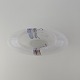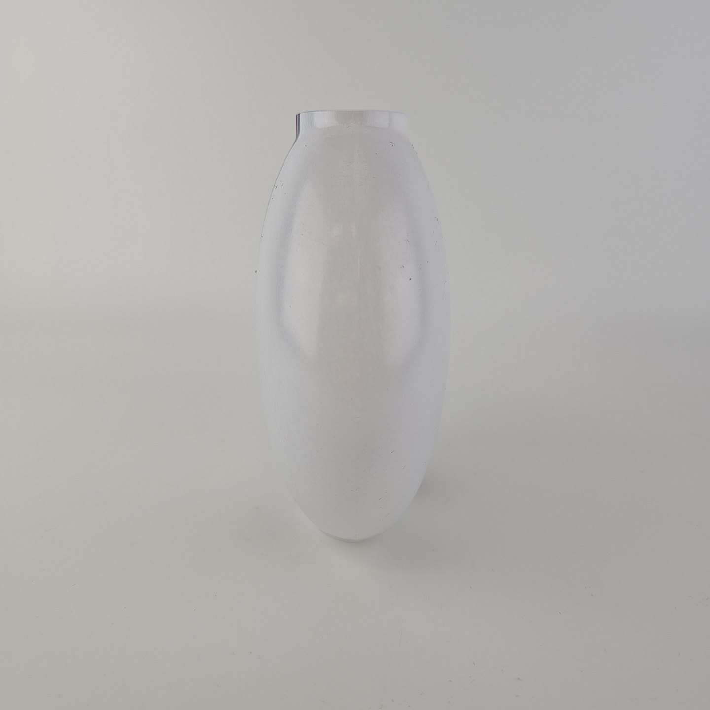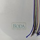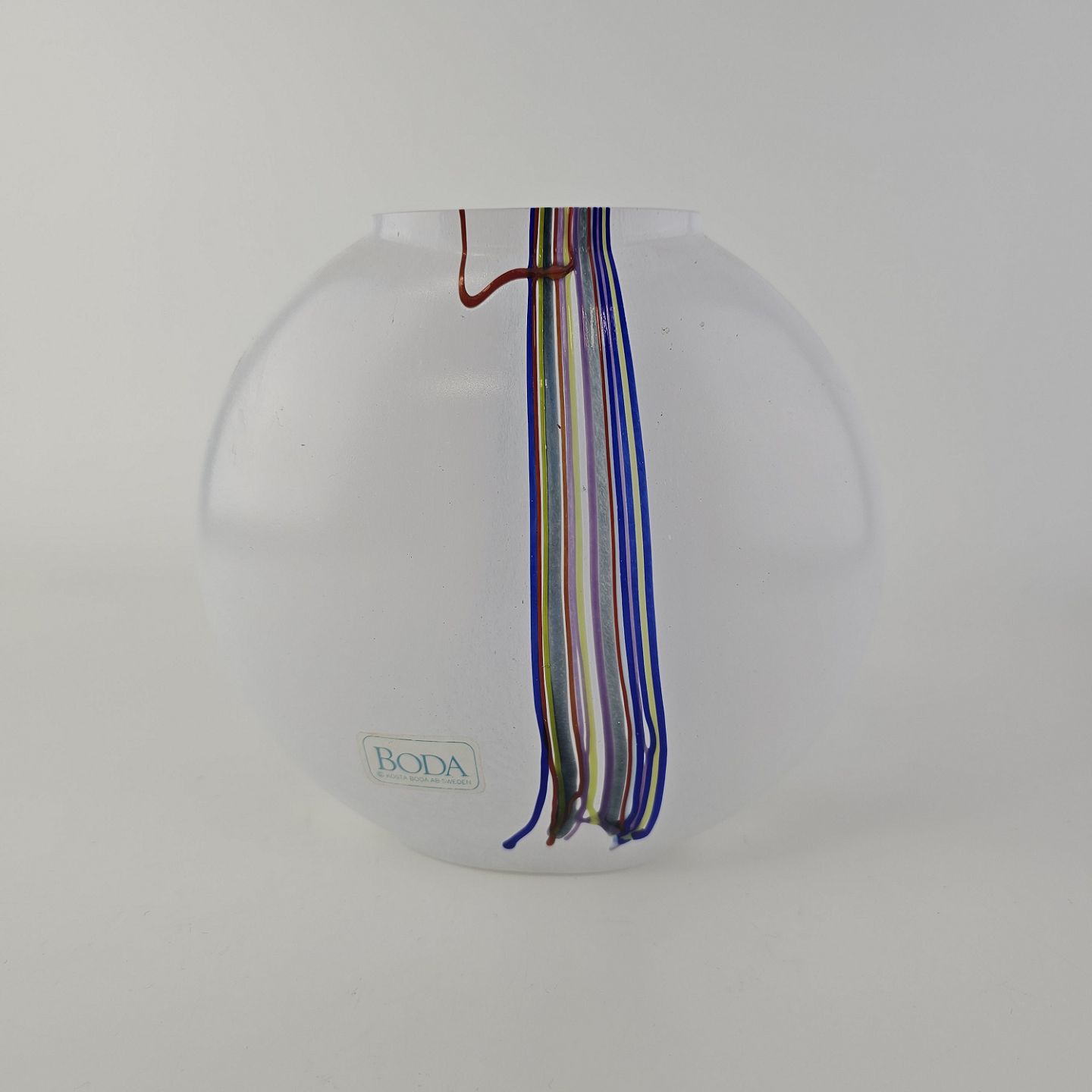 Rund vase i glas med dekoration af linjer og streger i flere farver