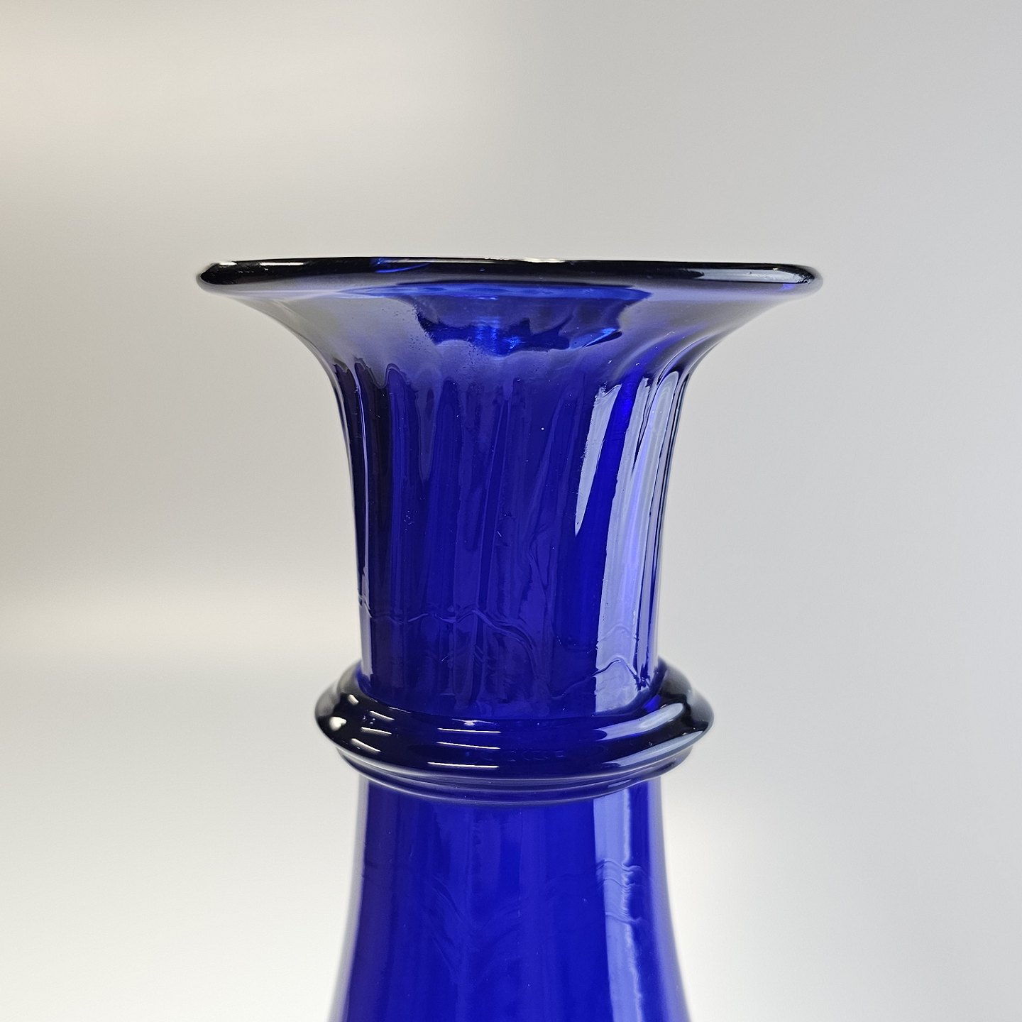 Håndblæst balusterformet hyacintvase i blåt glas