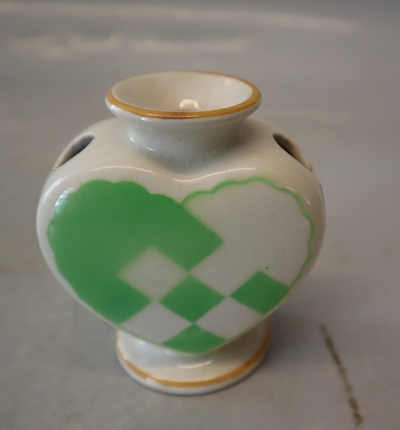 Grøn Hjertevase 7,5, i fin stand stemplet Royal Copenhagen Faience Julehjerte Julevase