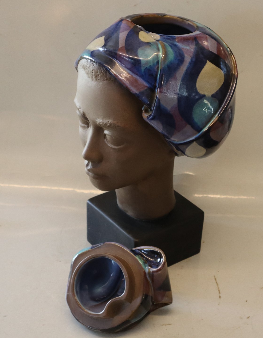 Kongelig Dansk Stentøj 3139-250 Aluminia Kvinde hoved med låg 43 cm Margrethe