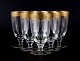 Rimpler Kristall, Zwiesel, Germany, six hand blown crystal drinking glasses with gold rim decorated with grapes and vine leaves.