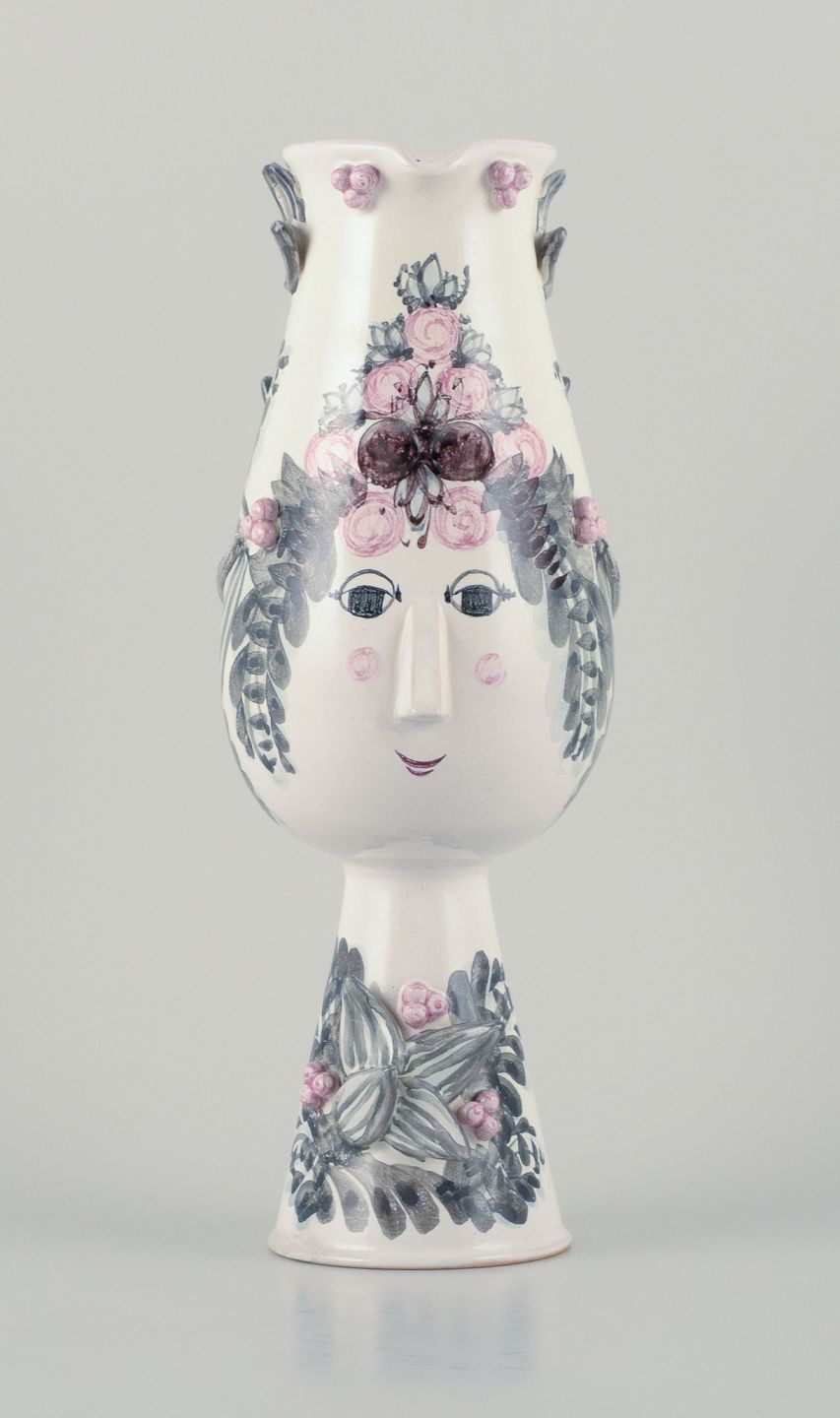 Bjørn Wiinblad, Denmark, "Det Blaa Hus" (The Blue House), large ceramic jug. Model K6. 1979. Signed. In perfect condition. Measurements: H 33.0 x D 13.0 cm.
