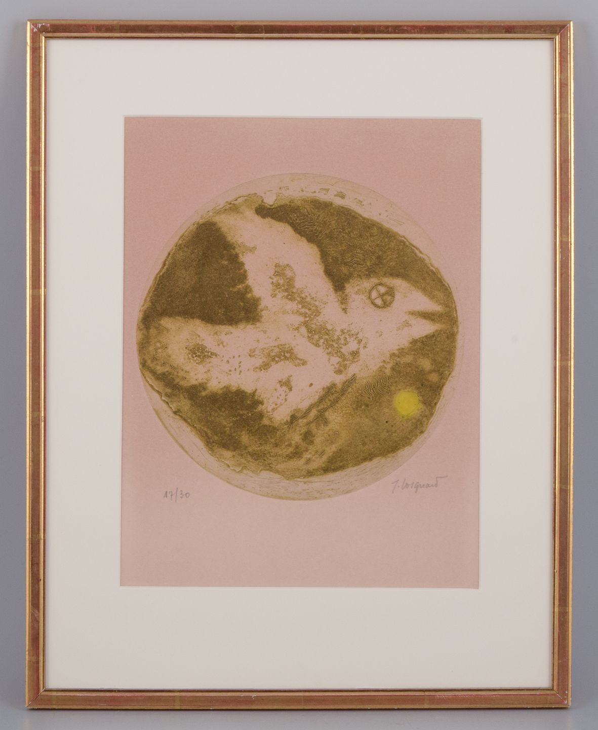 James Coignard, French artist. Color lithograph on paper. Bird. Late 20th century. Signed in pencil. Edition 17/30. Perfect condition. Dimensions: 30.0 cm x 23.0 cm. Total dimensions: 44.0 cm x 35.0 cm.