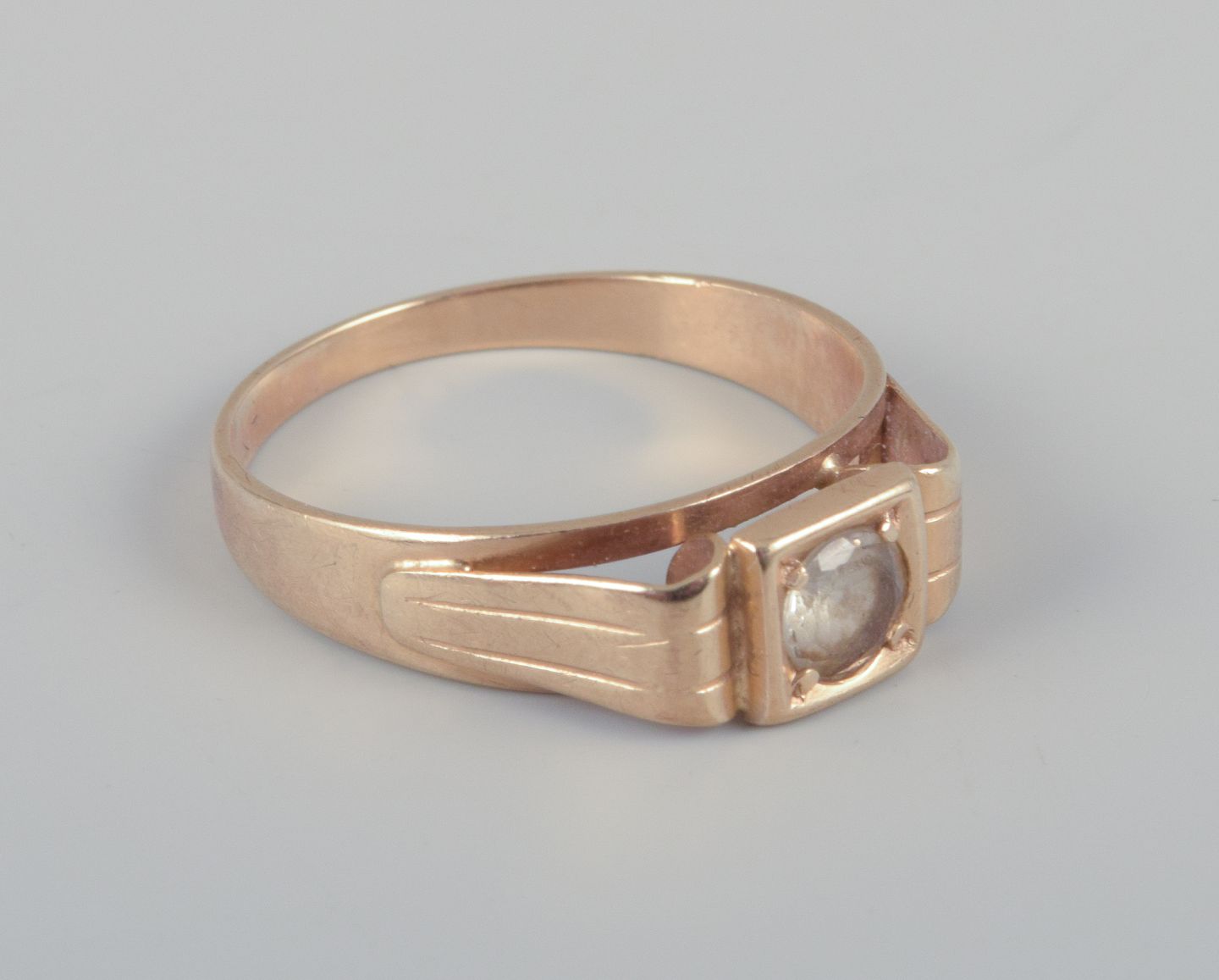 Danish goldsmith. 14-karat gold ring with a semi-precious stone.