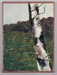 Hanna Brundin (1914-2000), Swedish artist. Oil on canvas. Landscape with birch tree in the foreground.