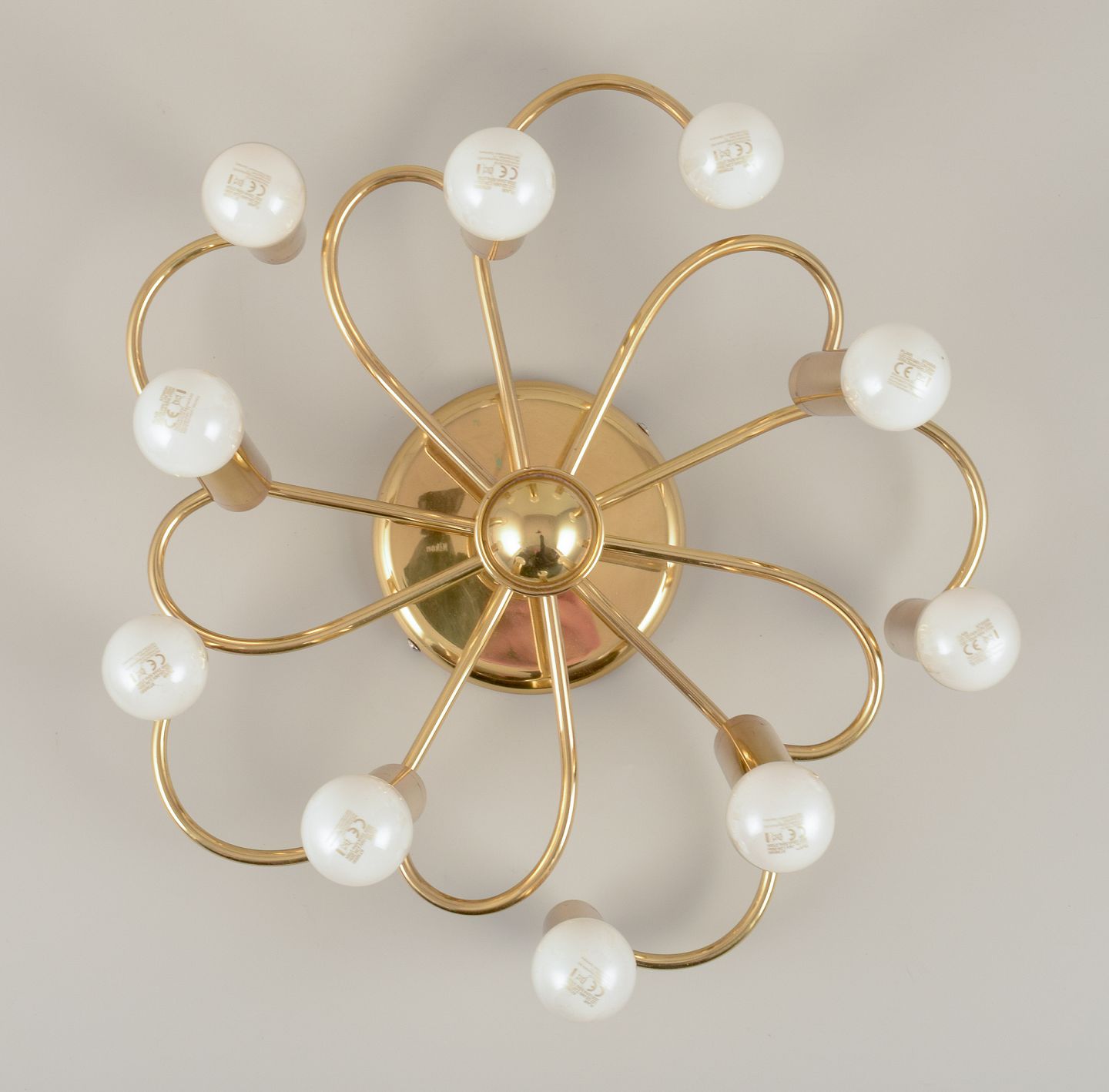 Honsel Leuchten, Germany. Modernist wall/ceiling lamp in brass with ten arms. Sciolari style.