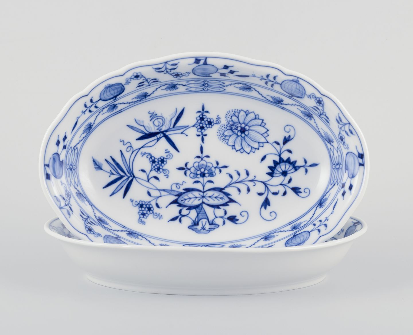 Meissen, Tyskland. To ovale løgmønstrede skåle af porcelæn.