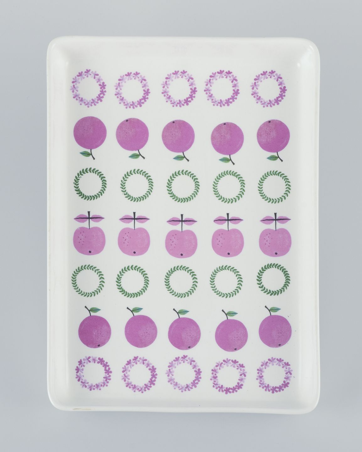 In the early 1960s, he created the colorful and whimsical Pynta series in flintware, which was produced from 1962 to 1965. The series included around 25 items—such as cups, bowls, plates, and butter dishes—decorated with stylized motifs like fish, bottles, lemons, cutlery, and fruit, reflecting a typical 1960s aesthetic.