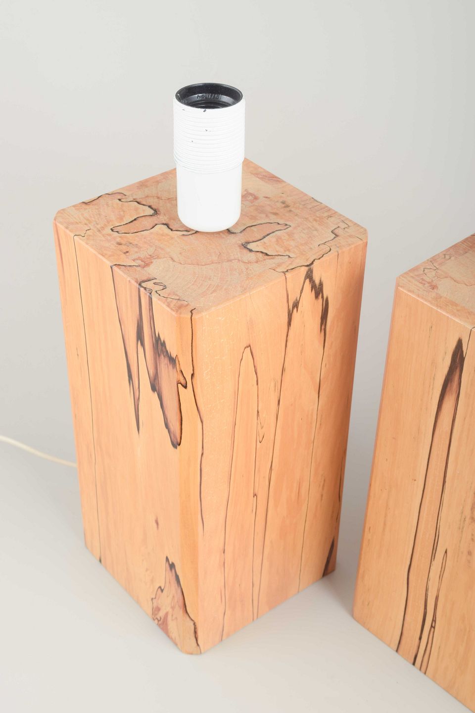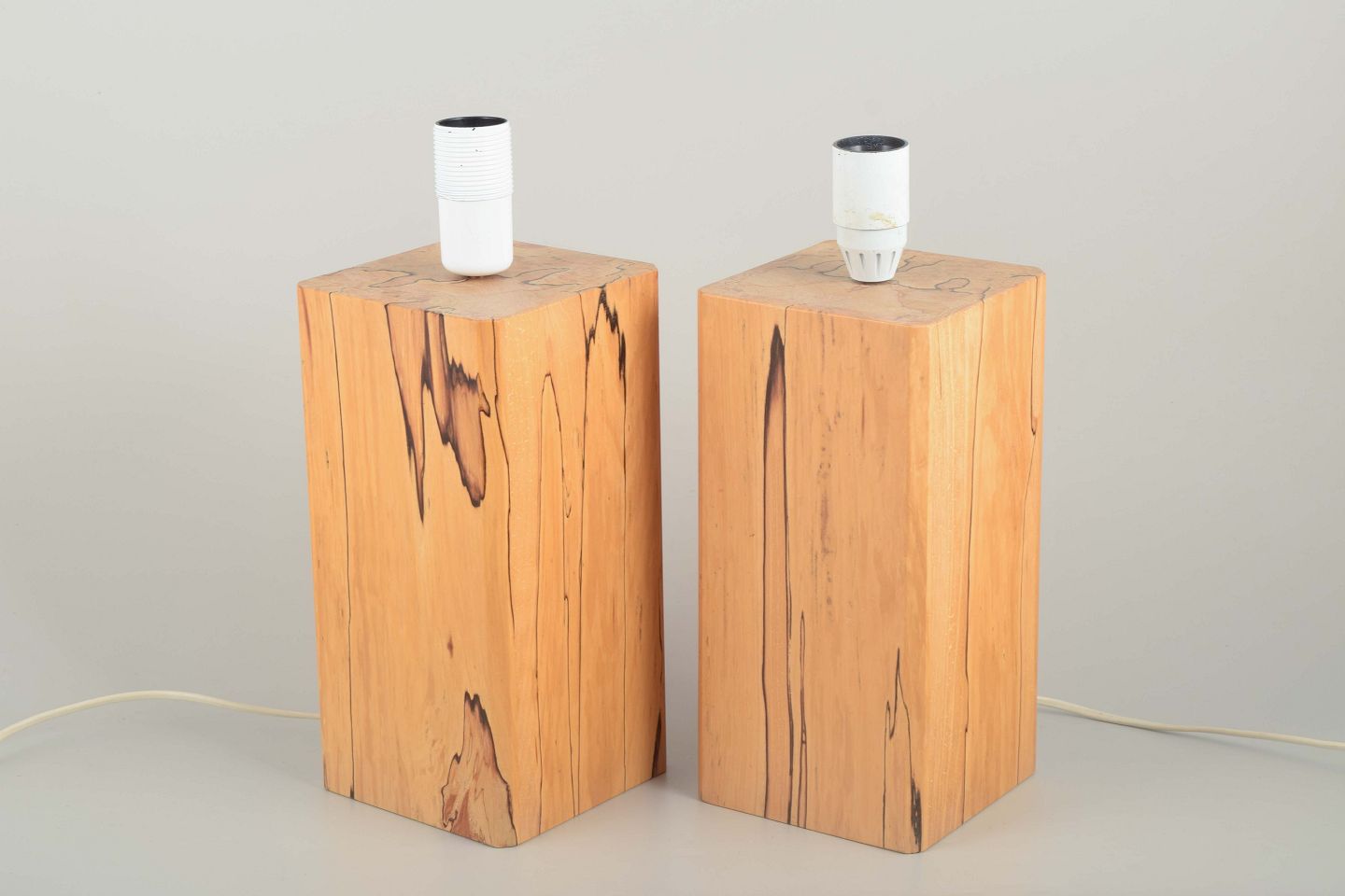 Scandinavian lighting design of the 1980s and 90s was characterized by clean lines, natural materials, and a functional aesthetic. This lamp base combines the raw warmth of solid wood with simple geometry and timeless form, making it a distinctive example of the era.