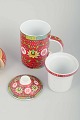 Tea set with mug and tea strainer and six bottle-/glass-coasters, ca. 1980/90s.