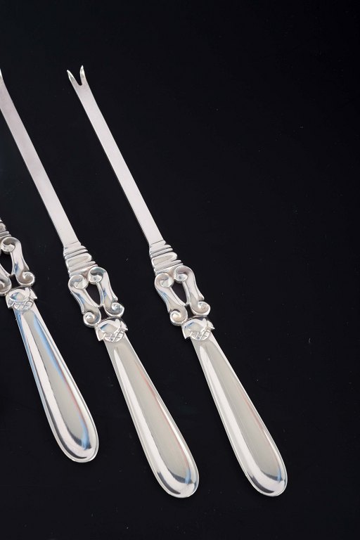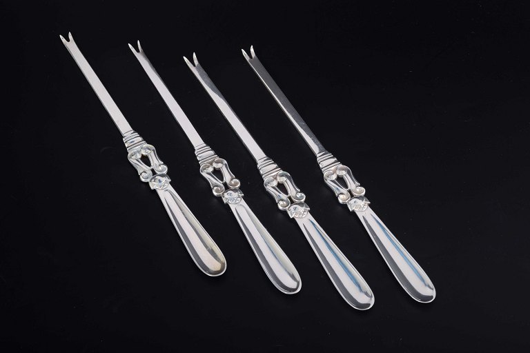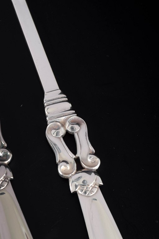 Elegante hummergafler i det klassiske “Konge / Acorn”-mønster, designet af Johan Rohde i 1915. Dekoreret med det karakteristiske akantusblad og agernmotiv.