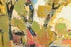 Farverigt og løst komponeret landskab udført i en varm palet af gule, grønne og rosa toner. Motivets strukturer er antydet gennem hurtige, spontane penselstrøg, hvor naturens former opløses til et rytmisk, næsten lyrisk farvefelt. Et ekspressivt og solmættet udsnit af landskabet, hvor stemning vægtes over detalje.