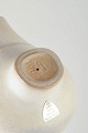 Skulpturel fuglefigur i glaseret stentøj med hånddekorerede blomster- og geometriske motiver i blå og terrakotta nuancer på lys bund. Signeret under bunden med værkstedsstempel og originalt mærkat bevaret.