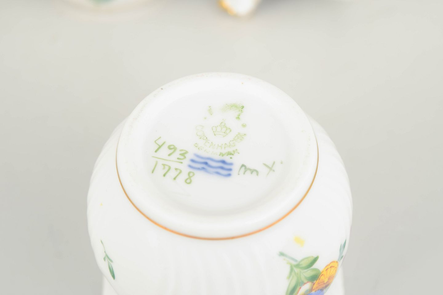 Håndmalet porcelæn dekoreret med saksisk blomst, model 493/1778. Første sortering.