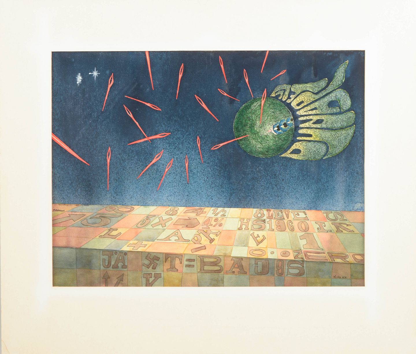 Håkan Stenberg er en svensk billedkunstner aktiv i anden halvdel af det 20. århundrede. Hans værker kredser ofte om surrealistiske og symbolske billedverdener, hvor abstrakte former, kosmiske elementer og grafiske tegn kombineres i poetiske kompositioner. Arbejderne er typisk udført i blandede teknikker og afspejler den eksperimenterende skandinaviske kunstscene i 1960’erne og 1970’erne.