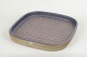 Large square stoneware dish with rounded corners and a decorative surface featuring a repeating triangular pattern in brown and blue glaze. Slight relief with a distinctive graphic expression. With original sticker. Model 4095M.