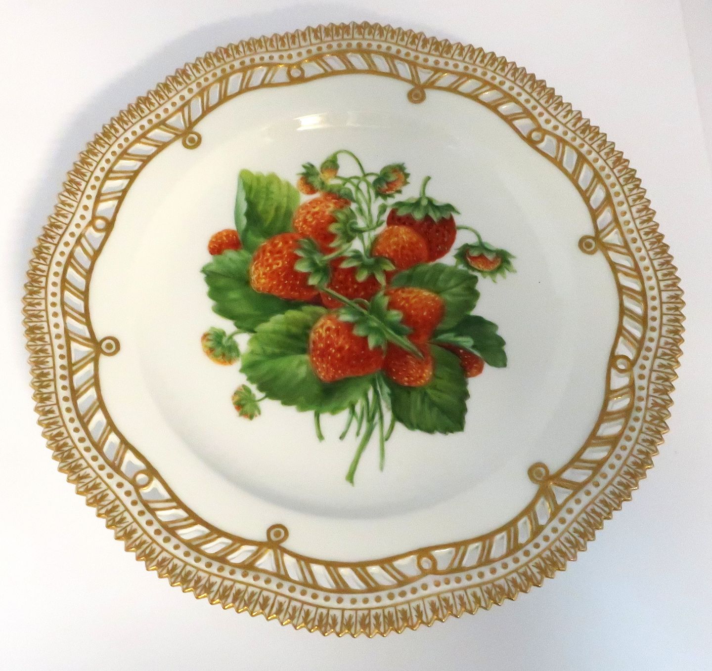 Royal Copenhagen, Flora Danica, frugttallerken. Frokost tallerken med gennemskåret bort. Design #429/3554. Diameter 23 cm. (1 sortering).