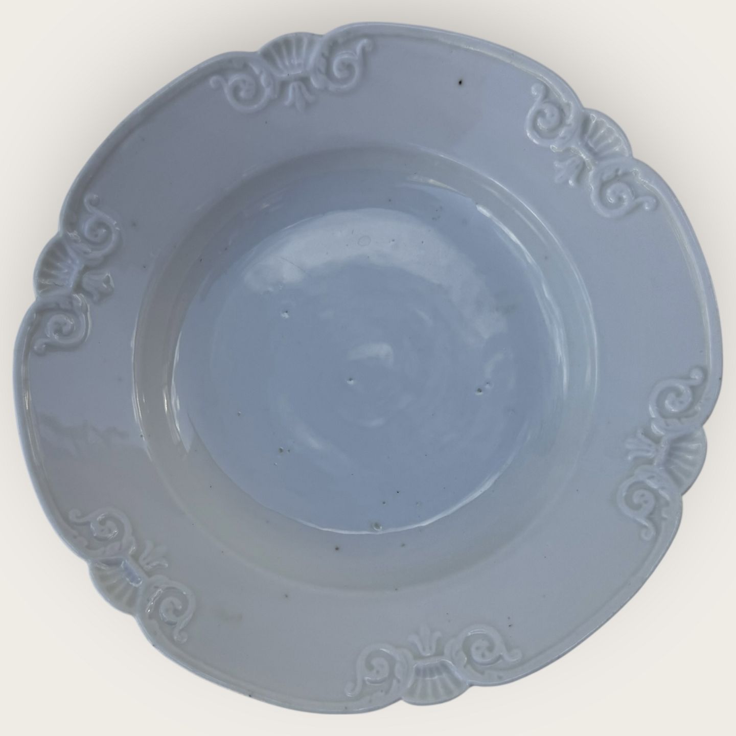 Royal Copenhagen, Rococo white / Rokoko hvid, Deep plate, 21.5 cm in diameter, appears with a few small scratches, we also have 3 pieces with repairs for 100 kr per piece.