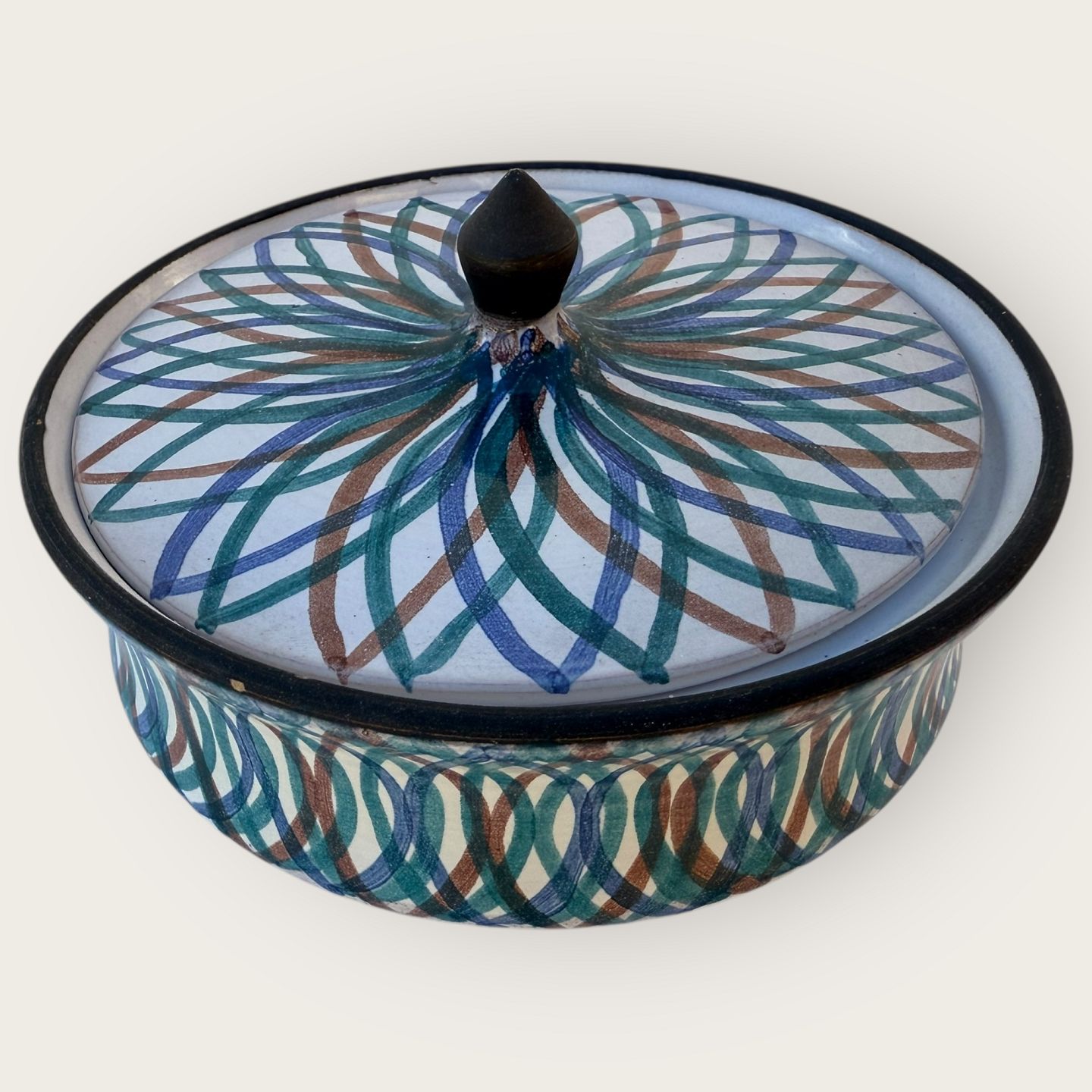 Grethe and Jørgen ceramics, Striped bowl with lid, Diameter 13.5cm, height 7.5cm, fine condition