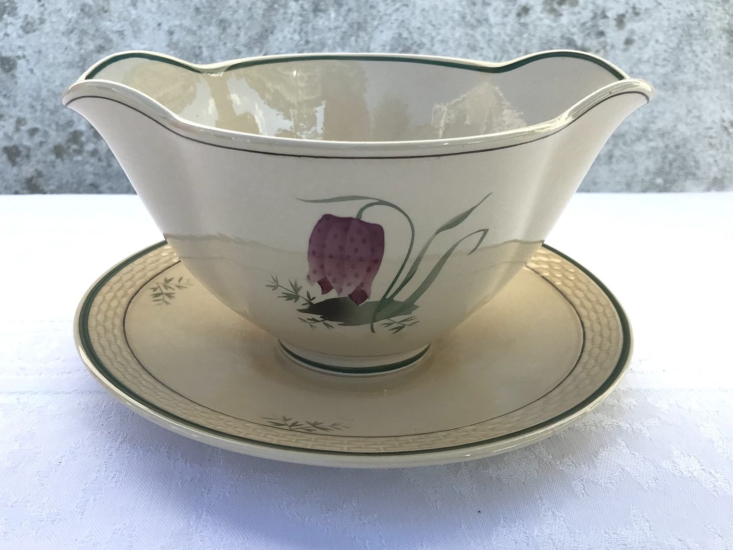 Royal Copenhagen, Aluminia, Victoria II Rahmenform, Vibe Egg, Fritillaria meleagris, Saucenschale, 20cm Durchmesser, 11cm hoch, Design Nils Thorsson * Schöner gebrauchter Zustand *