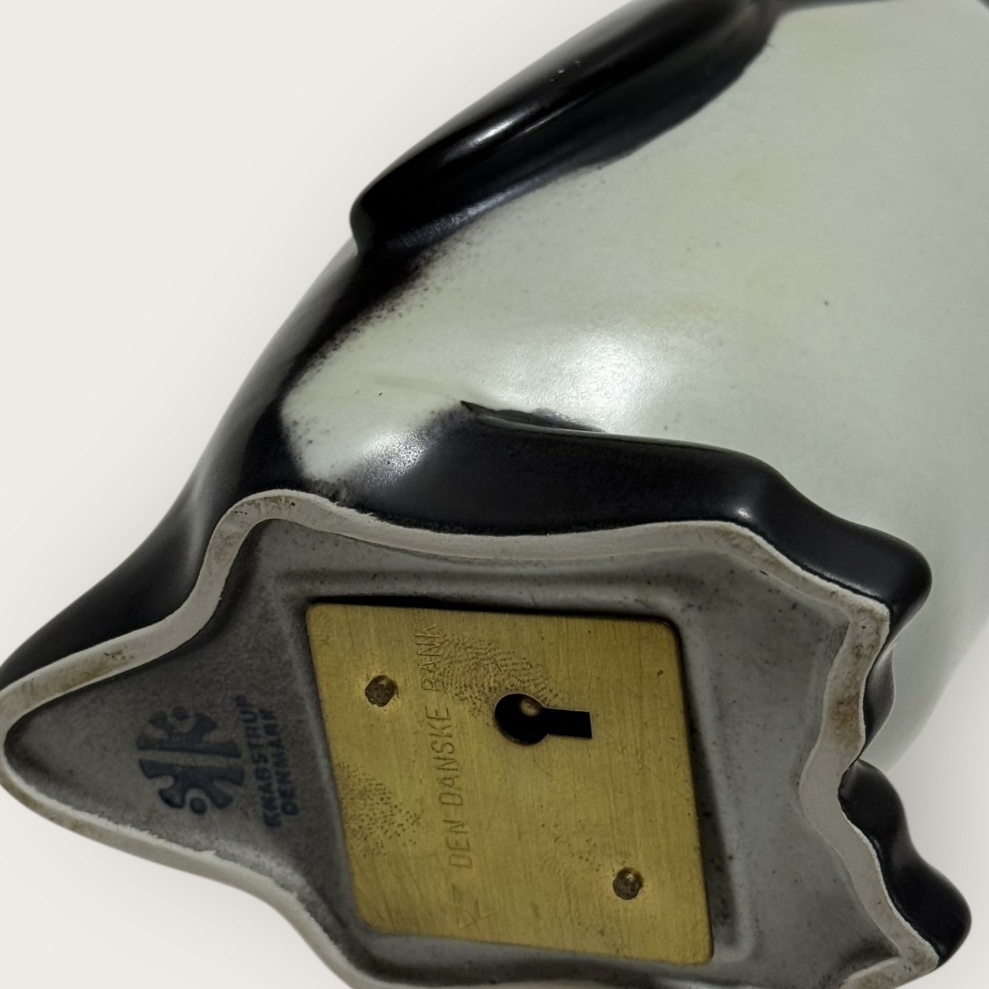 Knabstrup-Keramik, Pinguin-Spardose, Pondus, hergestellt für die Den Danske Bank, 27 cm hoch, guter Zustand, aber Schlüssel fehlt.