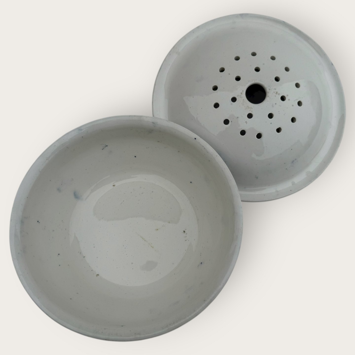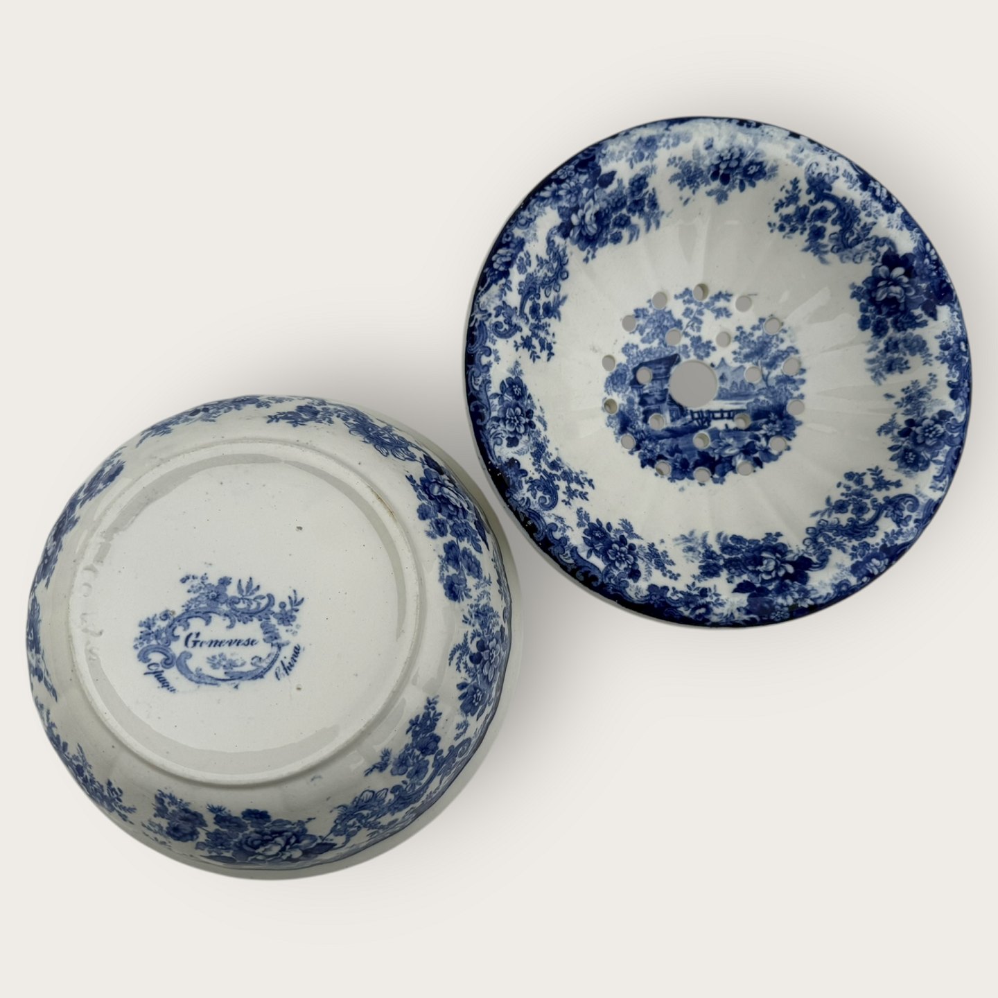 Genovese Opaque China, Fajance skål med si, diameter 19,5cm højde 7cm, pæn brugt stand