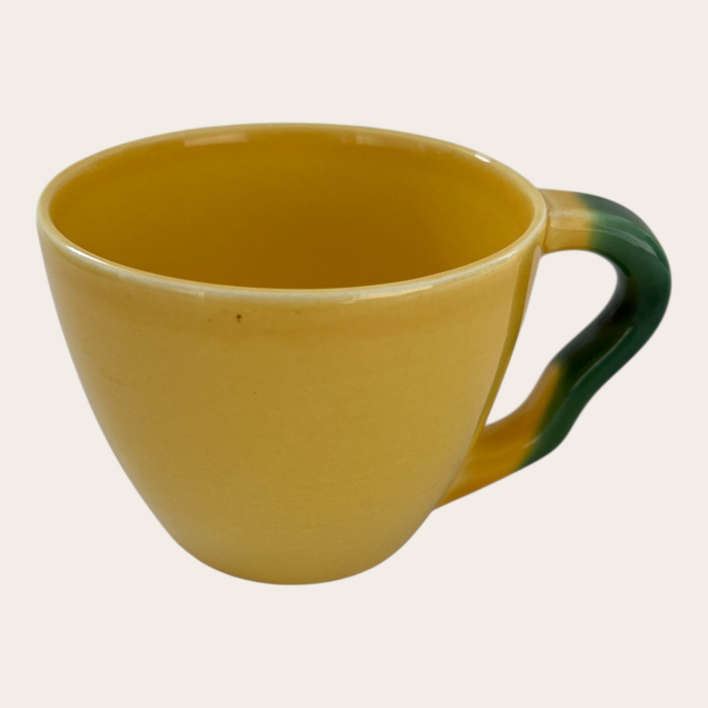 Royal Copenhagen, Aluminia, Ursula, Kaffekop Gul/ Grøn #072, 1. sortering, 7cm høj, 10,5cm bred, 8,5cm i diameter, Design Ursula Munch Petersen *Pæn stand*