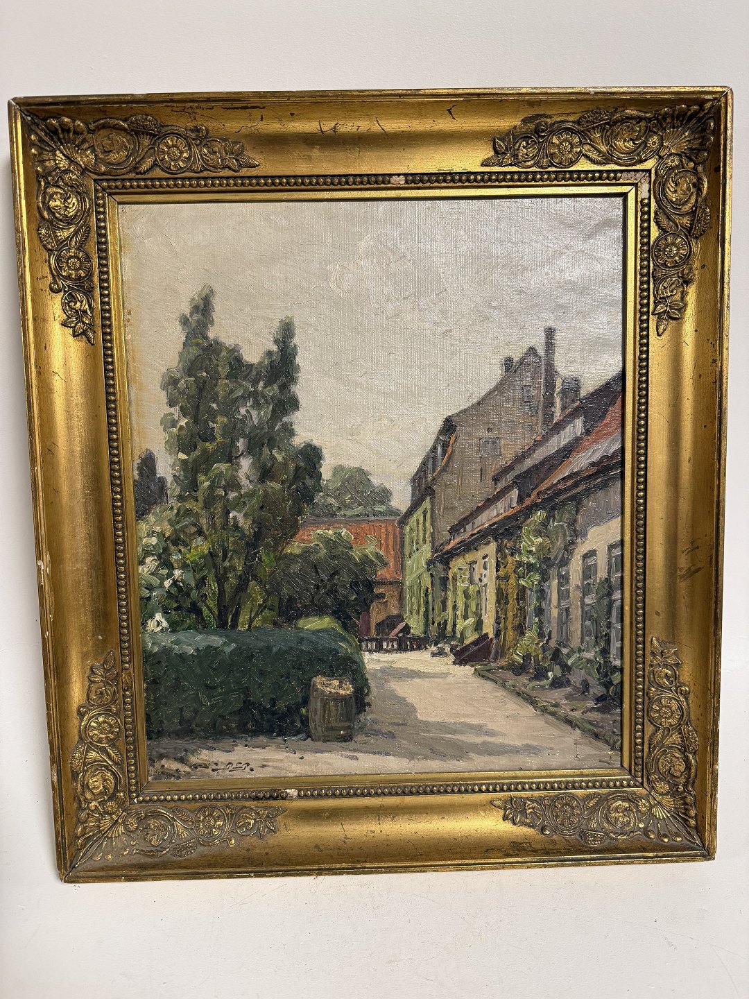 Peter Elias Petersen (1859 - 1950), Oil painting on canvas, Backyard motif probably from Copenhagen, signed P.E.P. and inscribed P.E.Petersen 1922, Dimensions: 39x45cm *A few small chips on the frame otherwise fine condition*