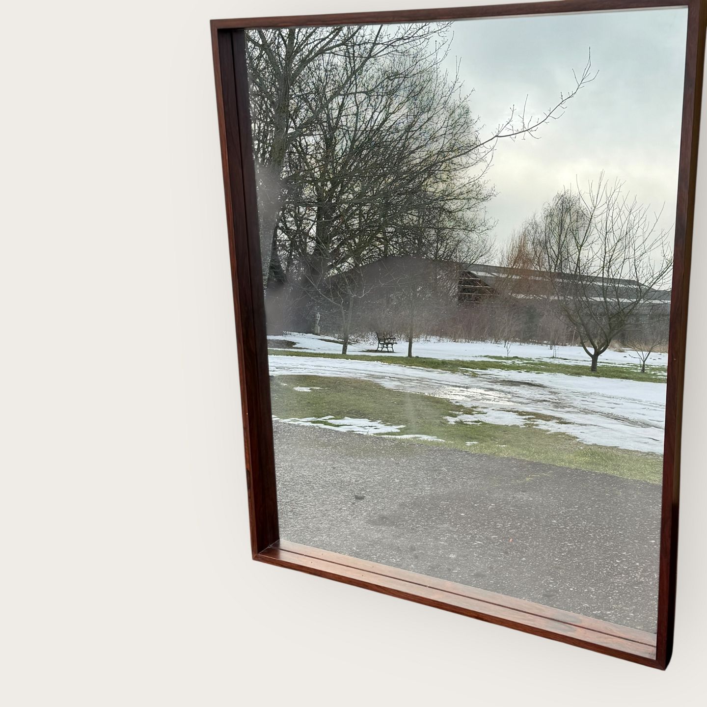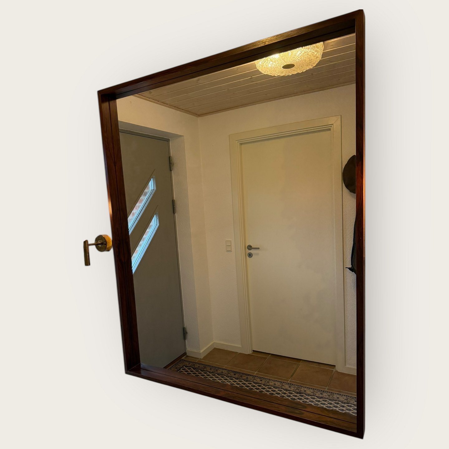 Large rosewood mirror with a strong frame. Has been in the hallway set together with the sideboard item no. 632824, Discontinued and marked from Illums Bolighus, Dimensions: 100x123cm *Excellent condition*