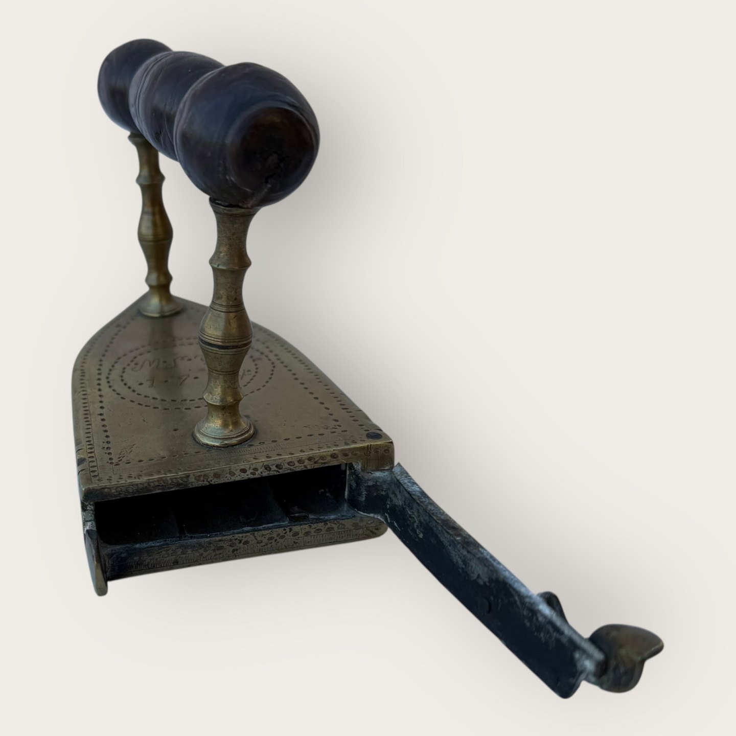 Brass iron, marked with owner's initials and 1784, Dimensions approx.: HxLxW 11x14x8cm *Good used condition*