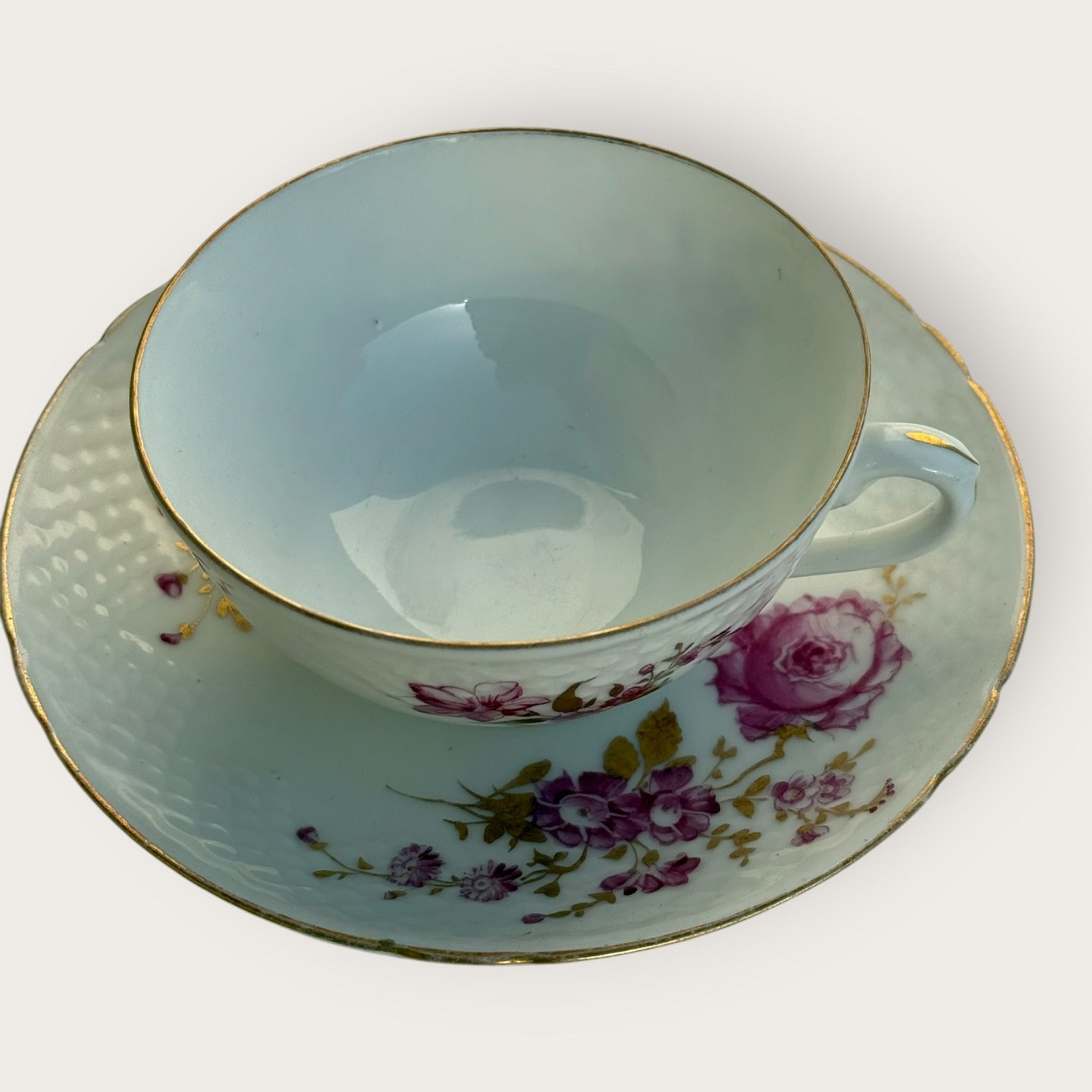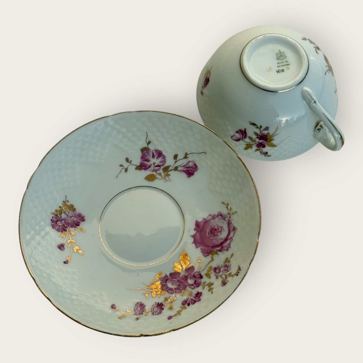 Bing & Grondahl, Rote Blüten mit goldenen Blättern, Goldrand, Teetassenset Nr. 108, 4,7 cm hoch, 10 cm Durchmesser, 1. Wahl *Guter gebrauchter Zustand*