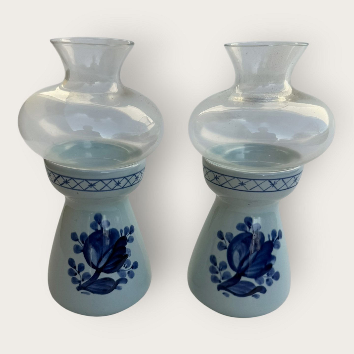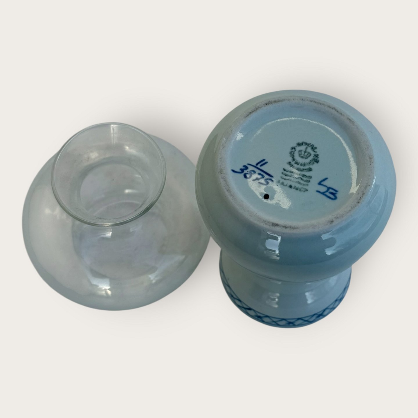 Royal Copenhagen, New Trankebar, Teelichthalter mit Glaskuppel, 1. Wahl, Nr. 11/3875, 17 cm hoch, 7,5 cm Durchmesser, Design Christian Joachim *Guter Zustand*