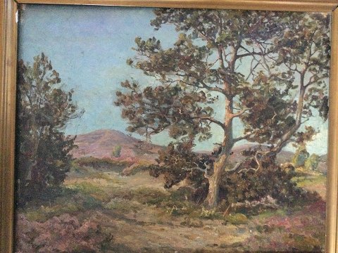 Harald Pryn (1891-1968): Træer i bakket landskab. Olie på lærred. Sign.: Harald Pryn 30x40 (44x52)