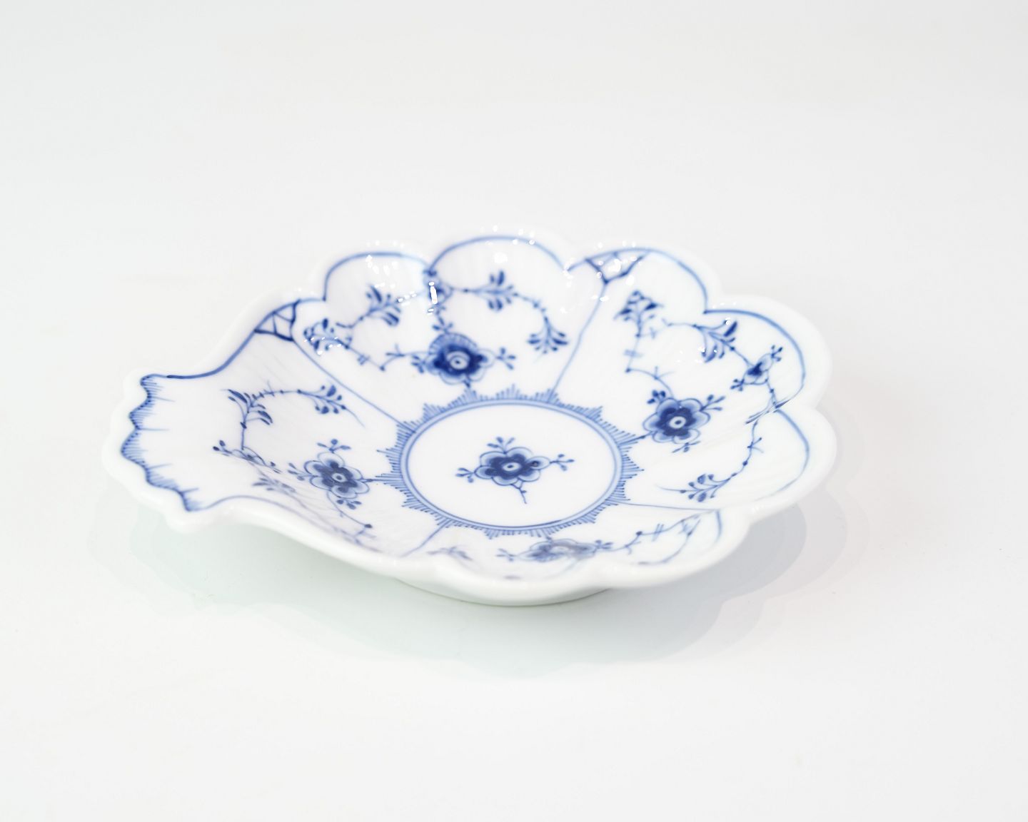 SoldThe dish in the classic blue-fluted pattern from Royal Copenhagen. This small serving bowl, model no. 2013, is hand-painted and dates from the period 1923–1935, which is confirmed by the stamp. The shape is slightly oval and has the characteristic blue-white porcelain.