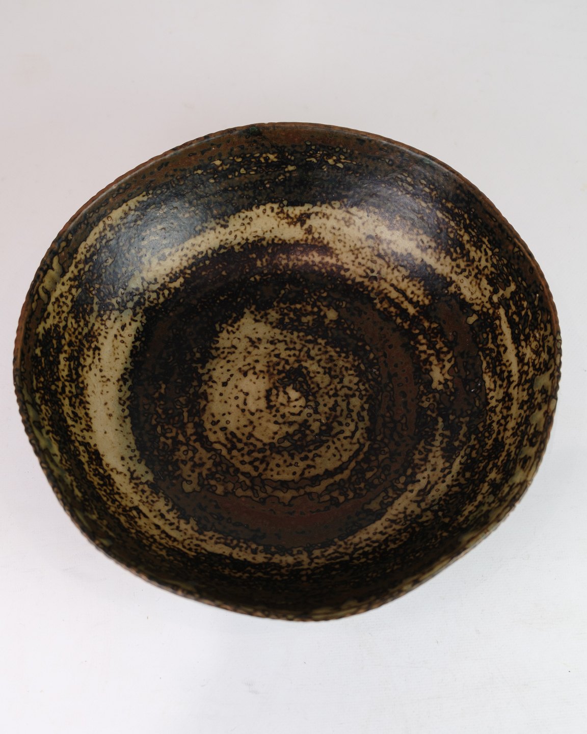 Skål nr. 20722 i stentøj, udført med sung-glasur af Axel Salto for Royal Copenhagen. Organisk form med levende overflade og dyb glasur, karakteristisk for Saltos stil. Signeret “Salto” i bunden.
