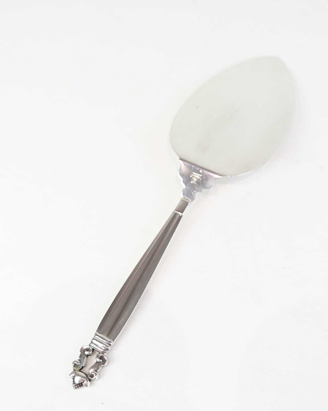 Georg Jensen serveringssæt i Konge mønster. Sterling sølv spade (No. 193, 26,5 cm) og gaffel (No. 114, 24 cm). Design af Johan Rohde 1915.
