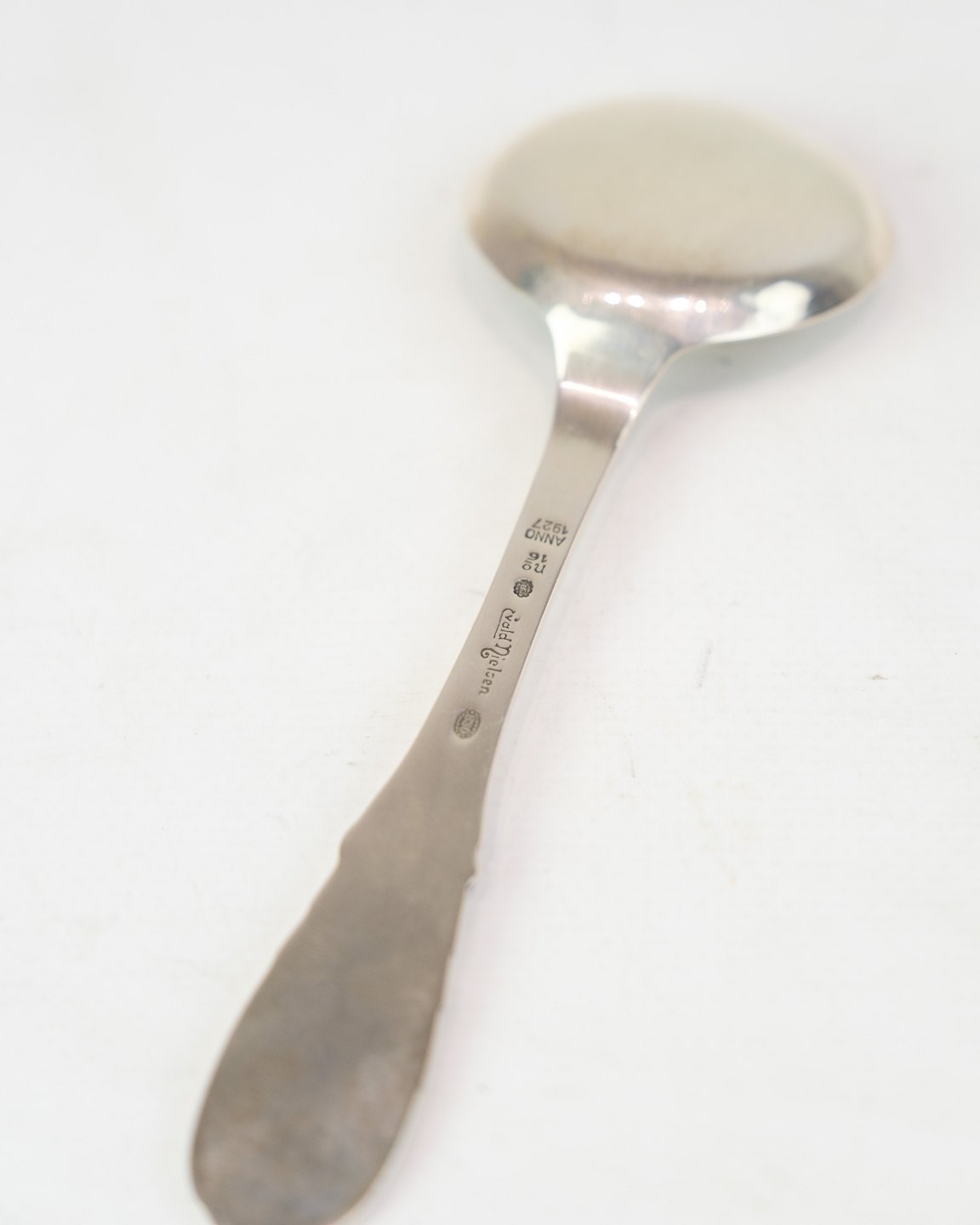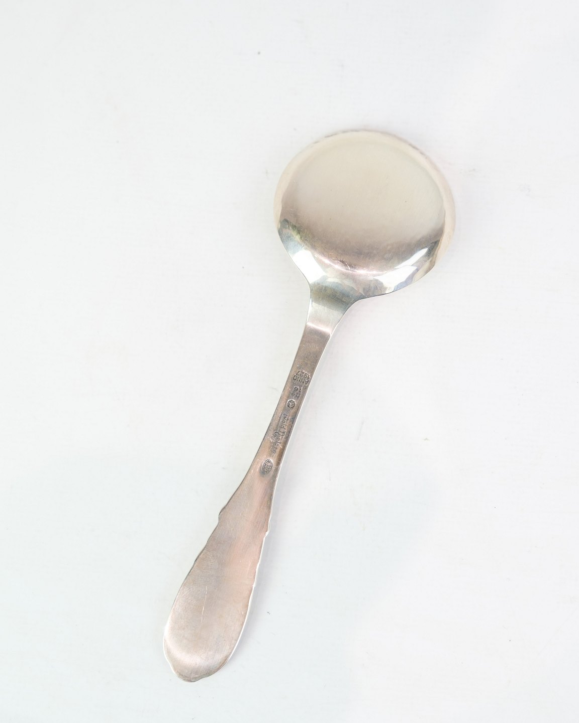 SolgtEvald Nielsen marmeladeske i ægte sølv. Hammerslået mønster, Model No. 16. Længde 16,5 cm. Klassisk dansk sølvarbejde.