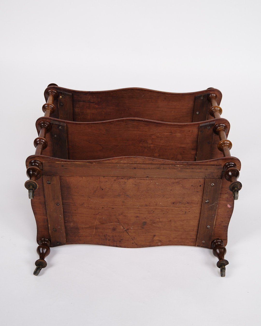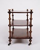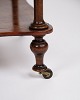 19th century mahogany bookcase/shelf. The furniture is furnished with three shelves and detailed turned columns. At the bottom it is mounted with small wheels, which provides both functionality and mobility.