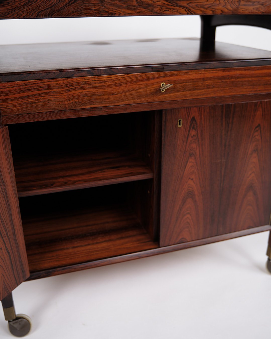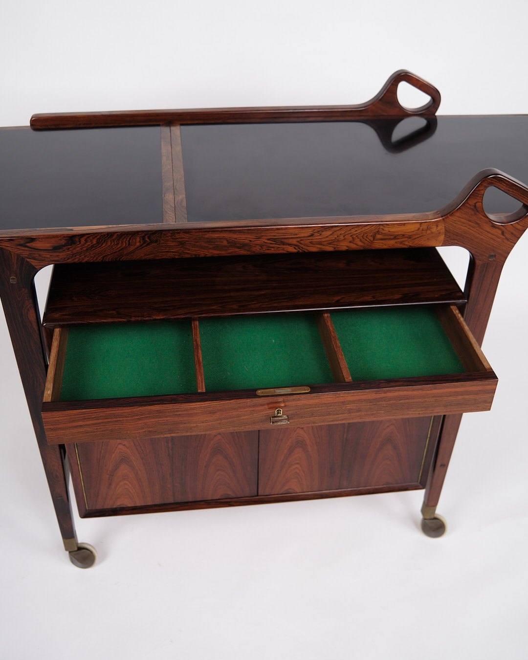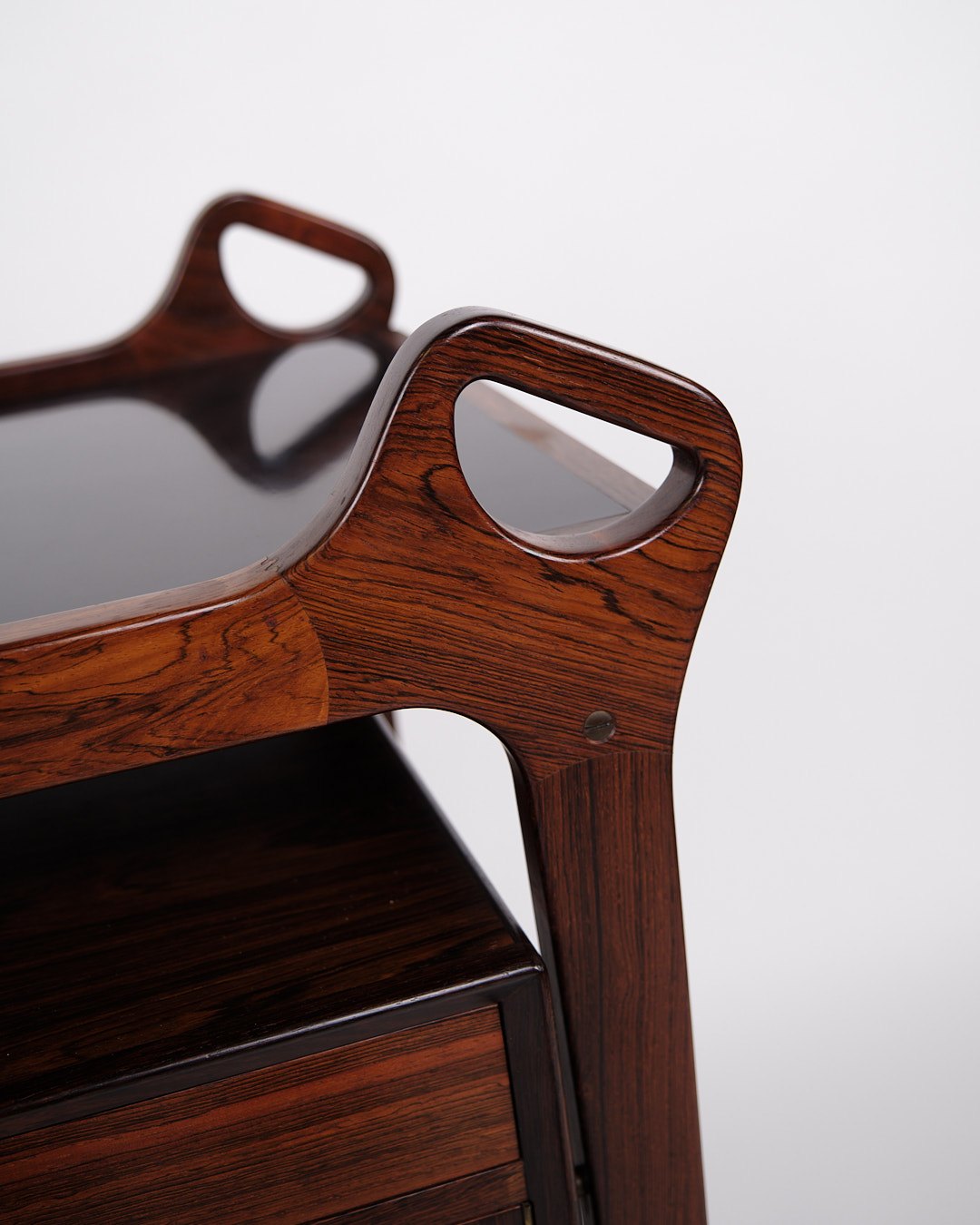 Bar Cabinet On Wheels - Foldable Top - Rosewood and Black Formica - Solid Rosewood Handles - Dyrlund