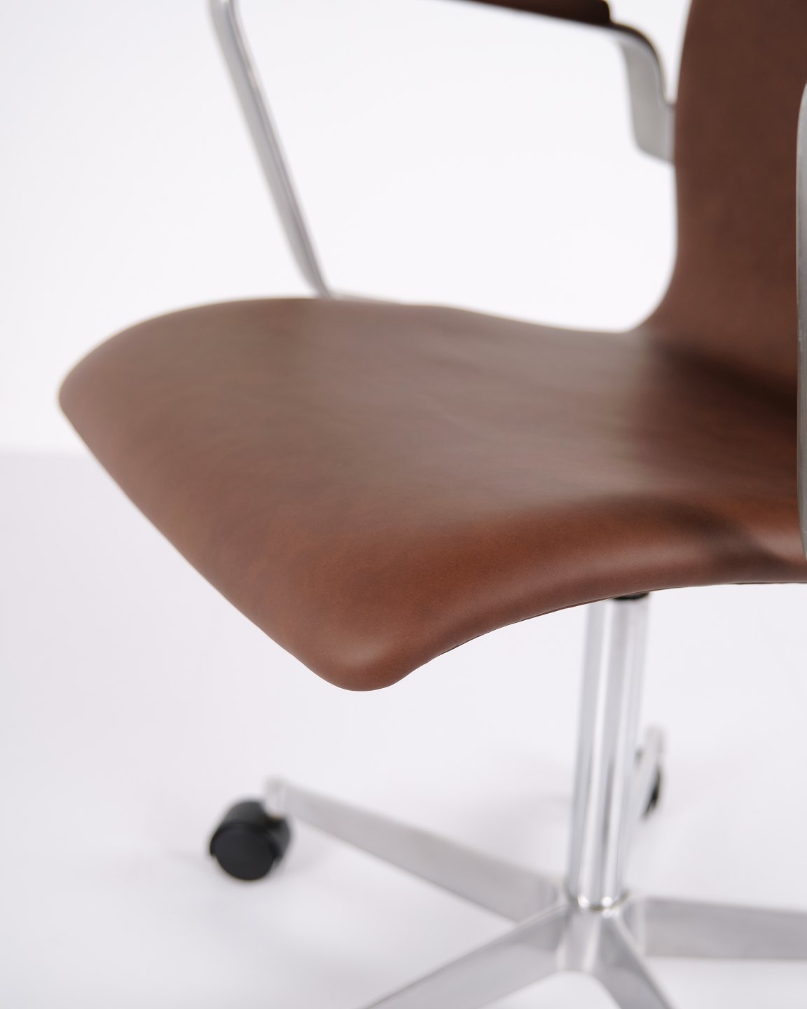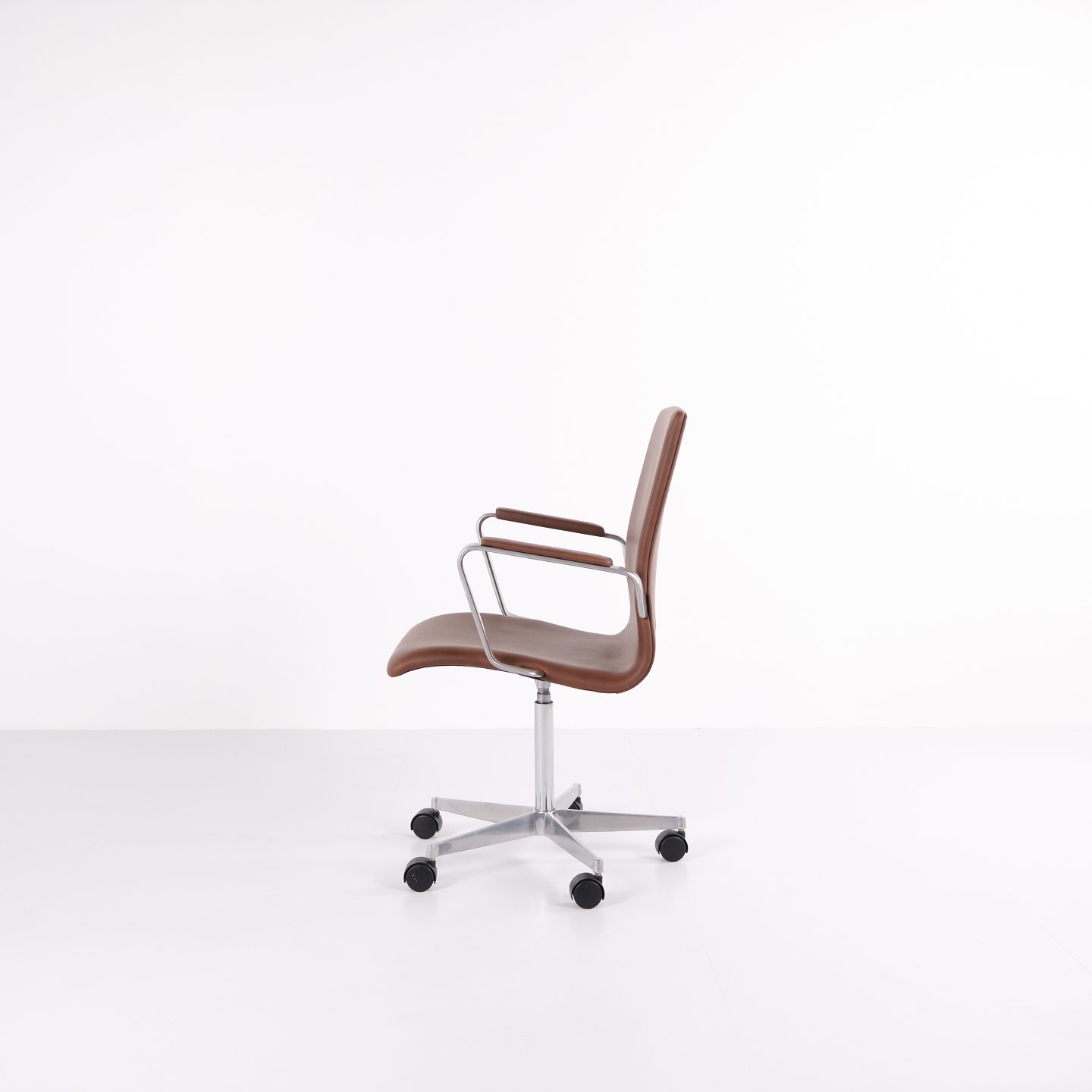 Arne Jacobsen Oxford Classic office chair, model 3291, for Fritz Hansen. Newly upholstered in brown leather.