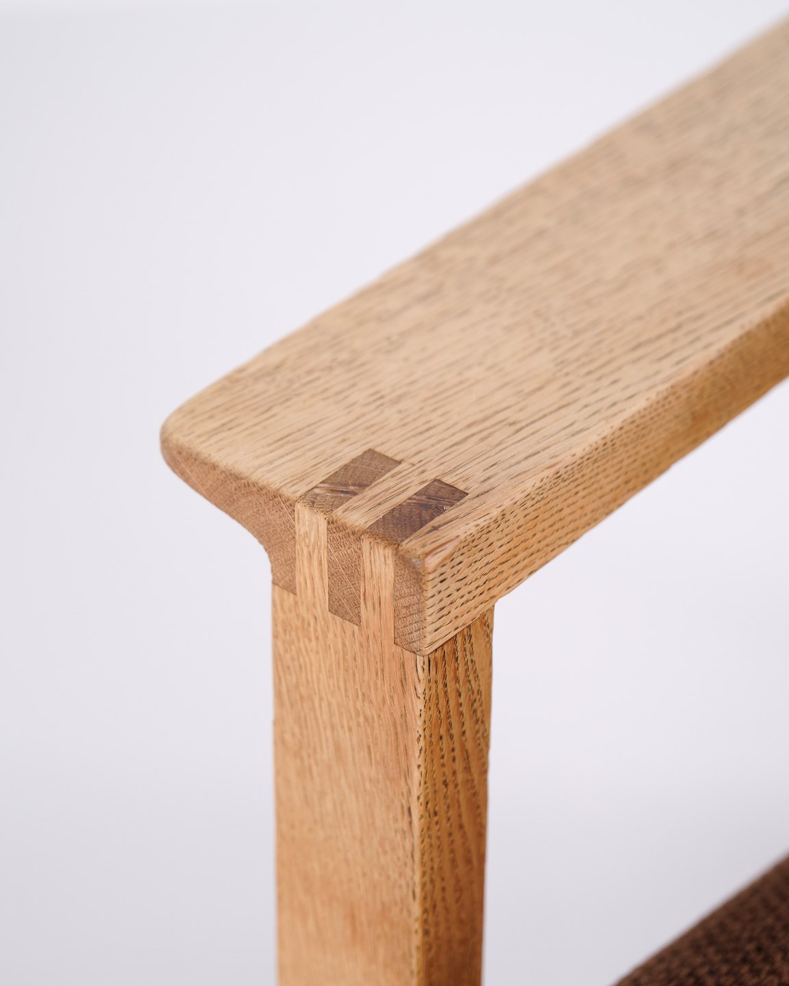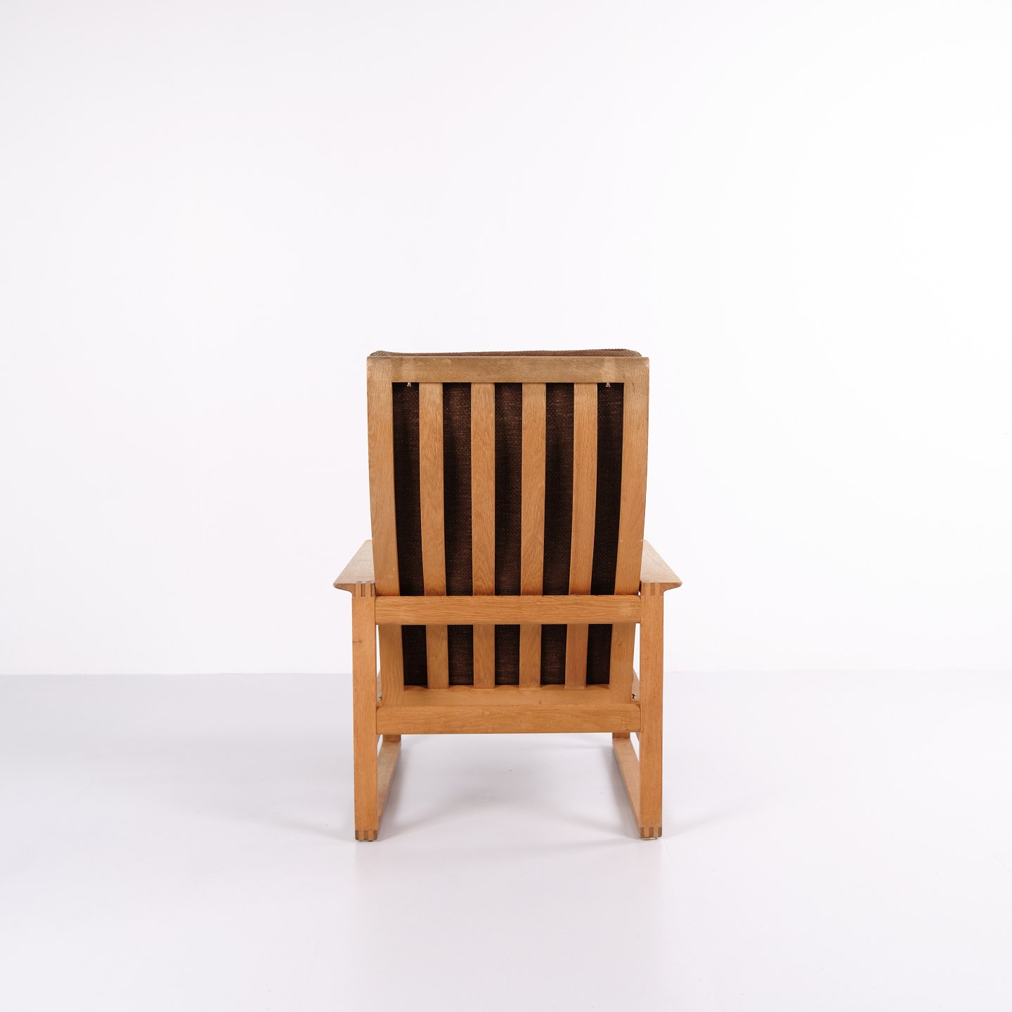Børge Mogensen slædestol BM2254 fra Fredericia Stolefabrik. Egetræ med brune hynder.