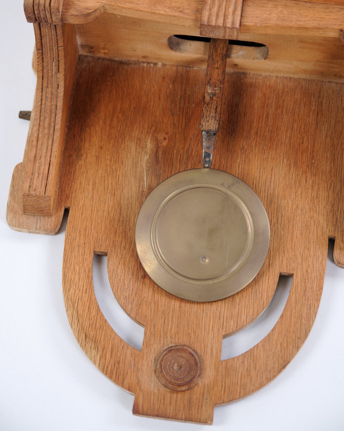 Vægur fra begyndelsen af 1930-tallet, udført i egetræ og designet i Jugendstilens karakteristiske organiske formsprog. Urkassen har elegante detaljer og en klassisk front, der understreger perioden og håndværket.