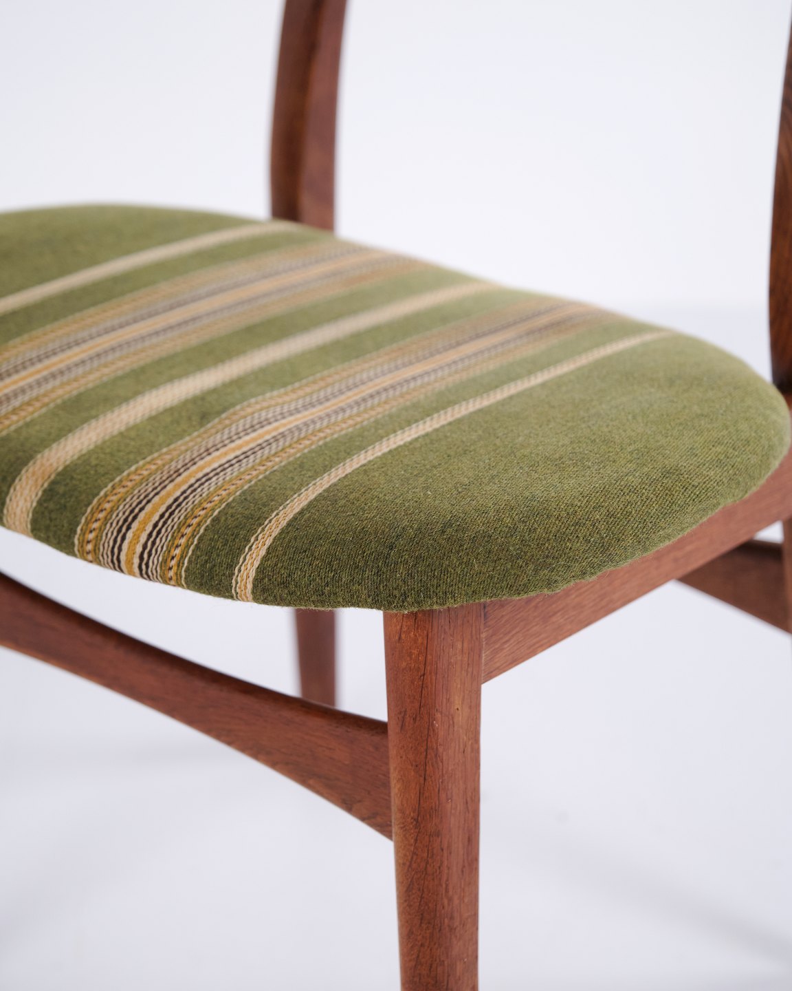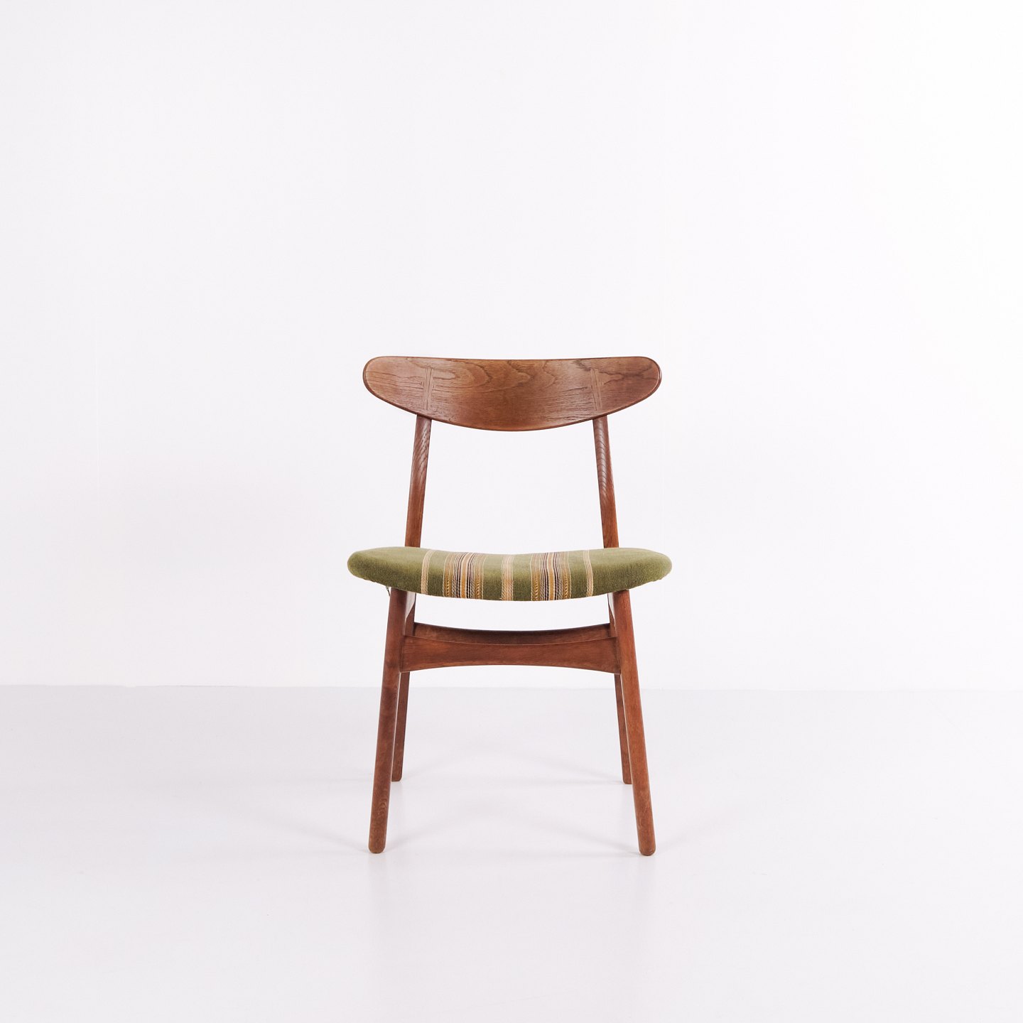 Sæt af seks spisebordsstole, model CH30, designet af Hans J. Wegner i 1954 og produceret i 1950’erne. Stolene er udført i teak og eg med originalt brændemærke. En klassisk Wegner-model med god siddekomfort og velkendt håndværk fra perioden.