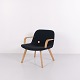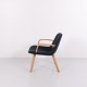 Erik Jørgensen loungestol model EJ 3 i egetræ og blåt stof. Dansk design med enkelt og tidløst formsprog.