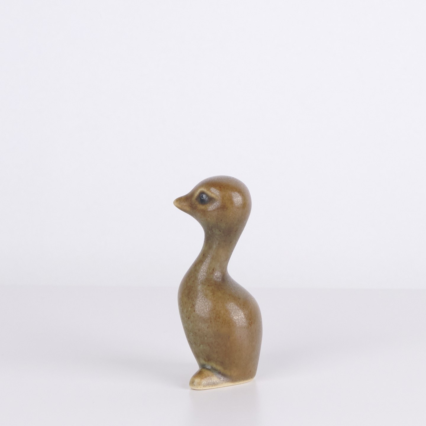 Fuglefigur af Knud Basse udført i glaseret keramik. Modellen har organisk formsprog med lang hals og stiliseret udtryk, kendetegnende for Knud Basses populære dyrefigurer. Dansk kunstkeramik og samlerobjekt fra midcentury perioden. Knud Basse er særligt kendt for keramiske dyrefigurer, især fuglemotiver.