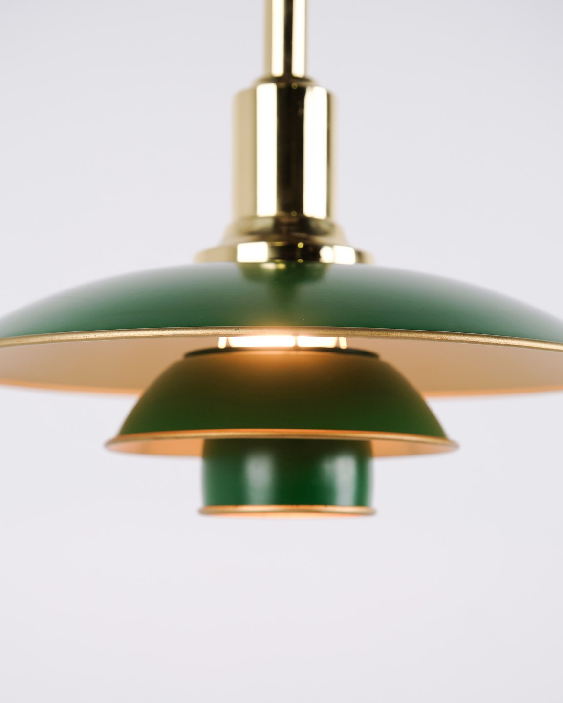 PH 3/2 pendel designet af Poul Henningsen og udgivet som jubilæumsudgave i 1996 af Louis Poulsen. Lampen er udført i messing med grønne metalskærme, hvilket giver modellen et markant og klassisk udtryk. PH 3/2 er en af Poul Henningsens kendte treskærmslamper, udviklet med fokus på blændfrit og behageligt lys. Jubilæumsudgaven blev kun produceret i en begrænset periode og findes også i en variant med røde metalskærme.