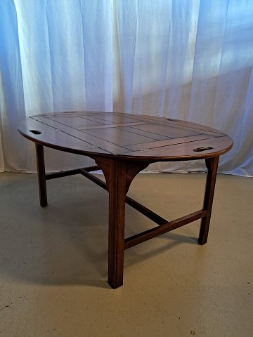 Sofabord i fineret mahogni, fra 1980erne. Det har brugsspor. H 65cm B 55cm L 85cm Længde med klapper 132cm Emne nummer: 73161