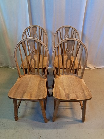 Dansk møbelsnedker sæt af 4 stole udført i teak m. messing sko på forben og polstret i lyst uld stof. Udført ca. 1950'erne. Pæn brugt stand. Mål: H. 86 cm. B. 48 cm. D. 48 cm. SH 43 cm. Emne nummer: 80765