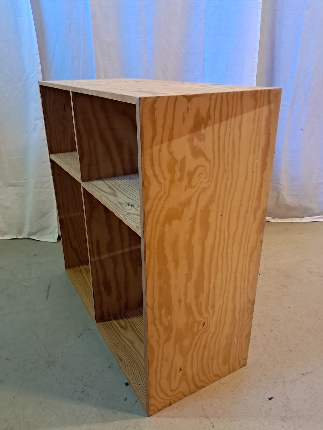Reolkasse i krydsfiner, fra 2000erne. Den har brugsspor og der medfølger ikke ophæng. Højde 70cm Bredde 70cm Dybde 30cm Emne nummer: 77245
