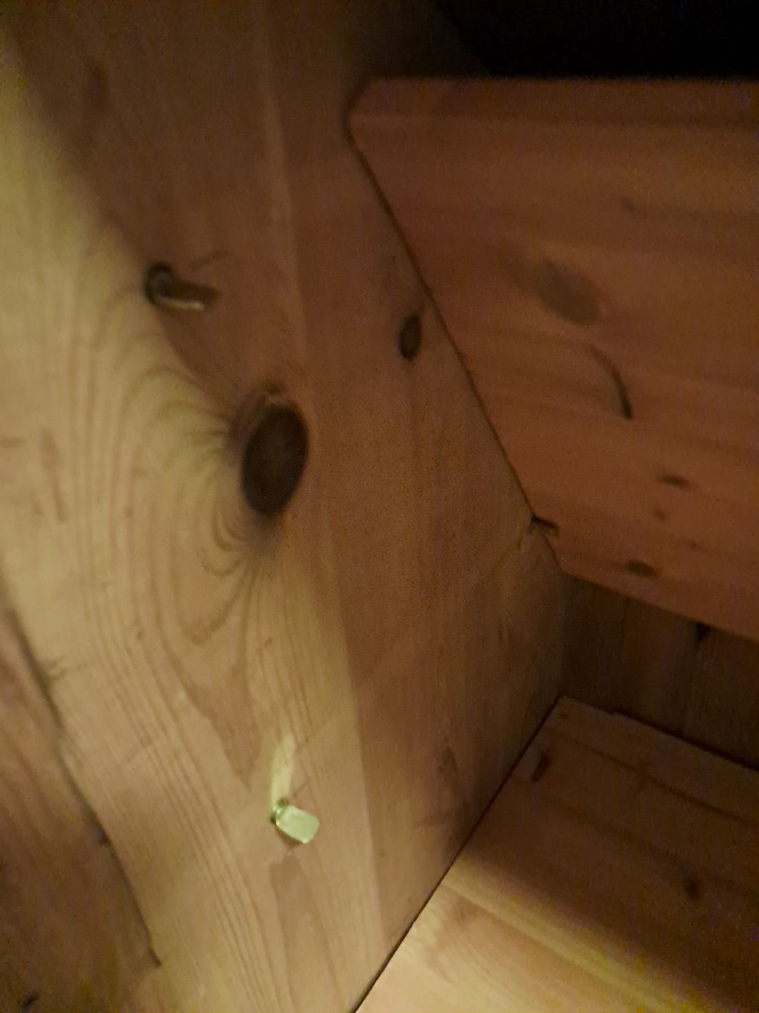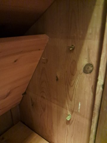 Skab i massivt fyrretræ, fra 1910erne. Det har brugsspor og defekte/mangler lister. Højde 185cm Bredde 90cm Dybde 46cm Emne nummer: 77252